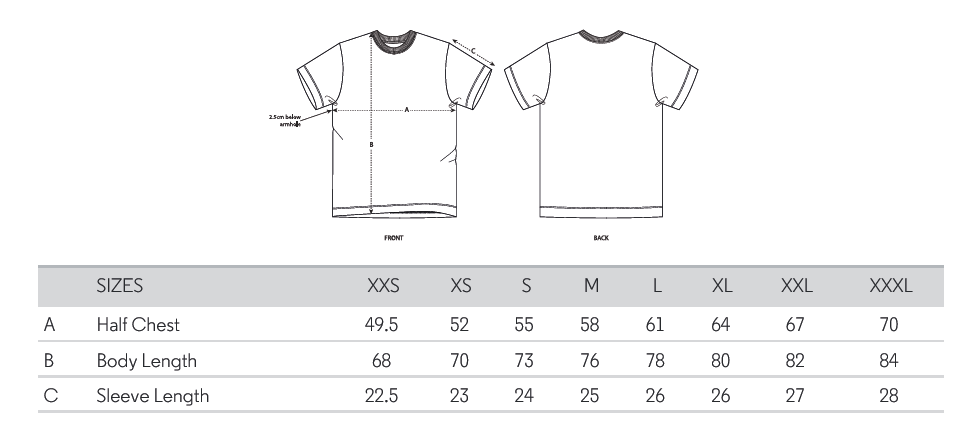 T-shirtens fit er afslappet sit, så dette er en mellemting mellem almindelig fit og oversize fit.